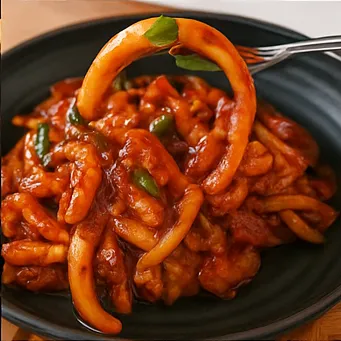 삶은 소면과 버무려 매콤하게 즐기는 한 접시, 오징어 볶음 소면 진짜 강추드립니다!