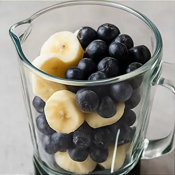 - 냉동 아로니아 1/2컵, 바나나 1개, 우유 또는 두유 1컵을 준비합니다.